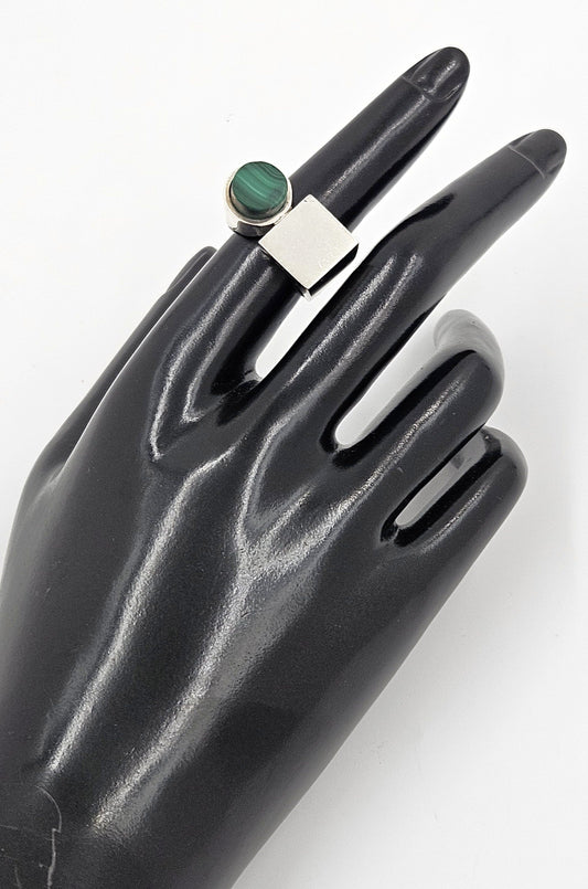 Stunning Artisan Made Sterling Silver & Malachite 3D Abstract Modernist Ring