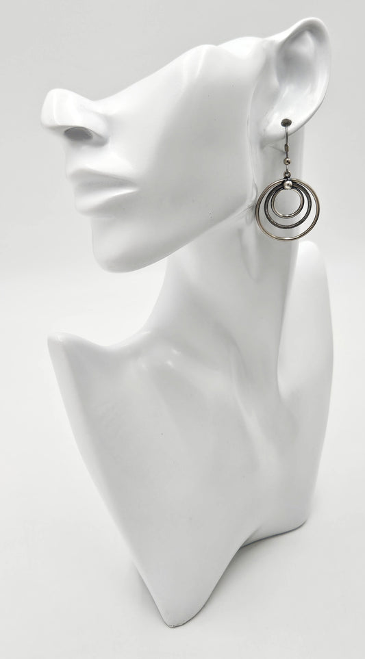 Eivind Knud Petersen Denmark Sterling Modernist Circles Dangle Earrings 50s
