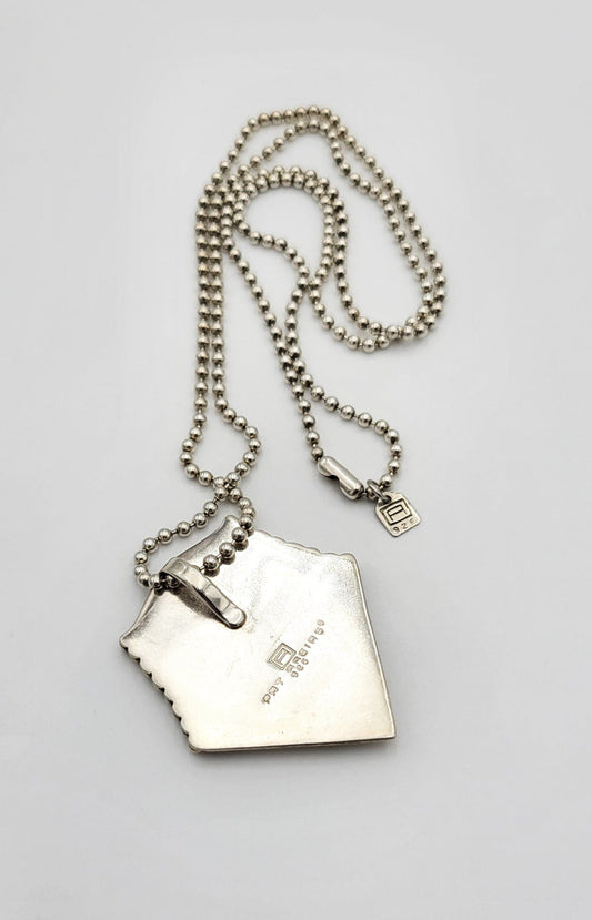 Vintage Designer Pat Areias Sterling Silver Basket Weave Pendant Necklace