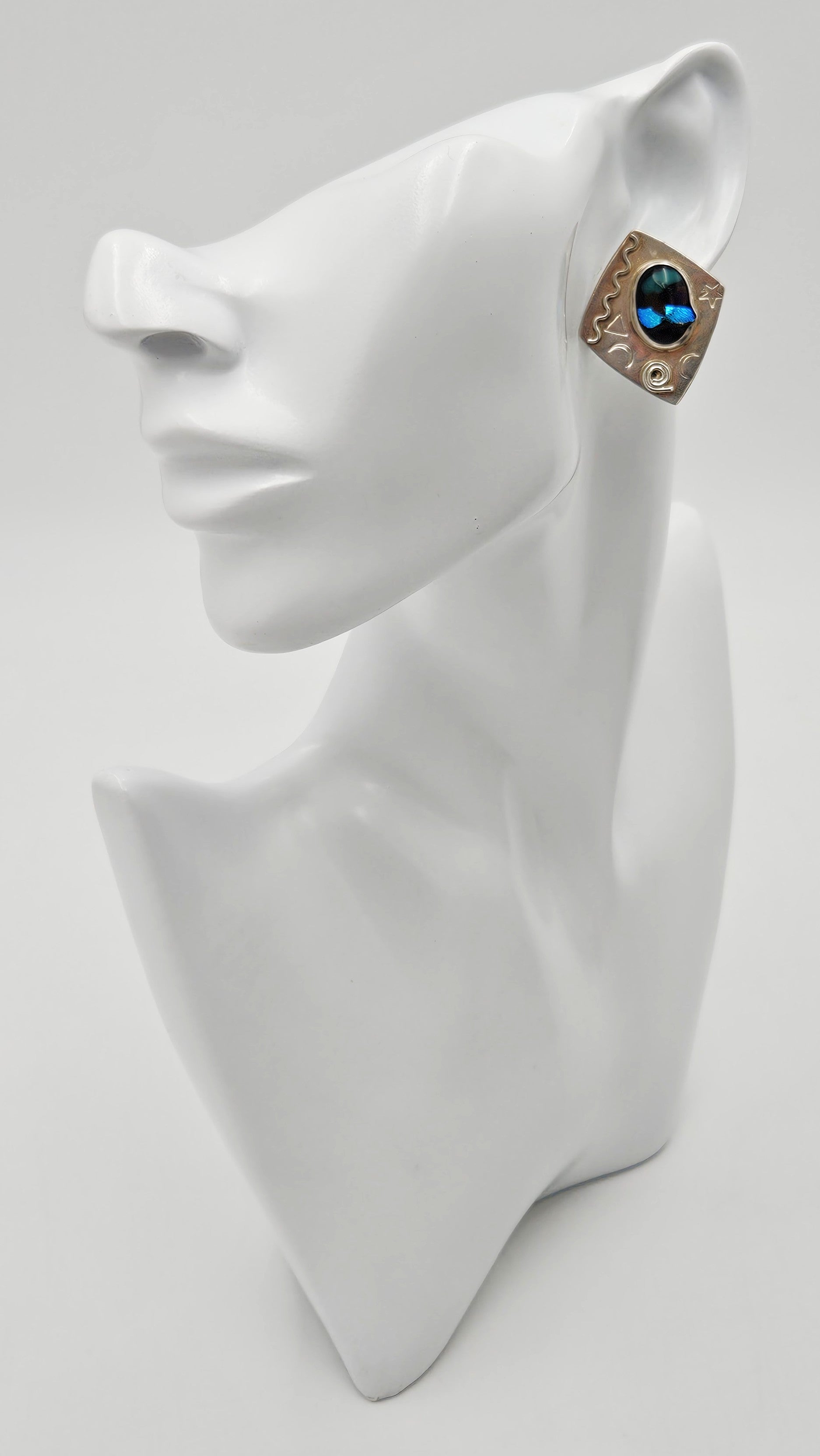 Designer Barbara Sucherman Sterling Silver + Glass Modernist Earrings 1980's