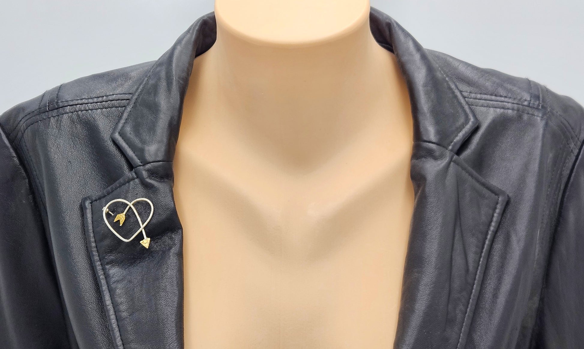 Superb Designer Sydney Lynch Sterling & 22k Gold Heart Shaped Arrow Brooch